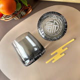 - 黑色氣泡威士忌杯(玄武岩杯)1對(包含底部文字雕刻,固定[福]、[財] 2個模板 )