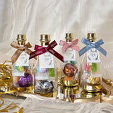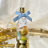 這款伴手禮瓶子設計成香檳形狀,小巧可愛又精緻,瓶子頭部配有精美的蝴蝶結,並附上帶有 "Thank You" 字樣的小卡,傳遞感謝之情。瓶底可輕鬆扭開,方便您放入喜糖或其他小物,為您的賓客帶來獨特的驚喜與祝福。