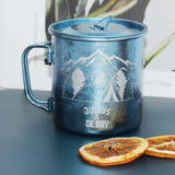 Pure Titanium Cup | 戶外便攜純鈦璀璨藍色冰花水杯(雕刻)DY04-52