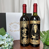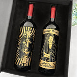 其中一支紅酒的瓶身人像雕刻,細膩的工藝展現了獨特的藝術風格,更加凸顯了這份禮物的高貴和特別。而另一支紅酒則是文字雕刻,讓禮物更有意義和價值。
