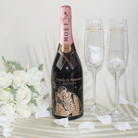 定制moet單支雙杯套裝|人像雕刻 客製化禮物 定制禮物 紀念禮物 DY01-329