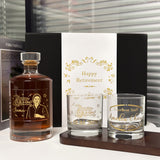 -威士忌對杯:兩個威士忌杯上精緻的雕刻文字,分別為“Happy Retirement”與員工名字及退休日期,雕刻工藝細膩且立體感十足,呈現出專屬的個人風格。