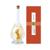 瓶身飾有2026年生肖——馬的圖案,酒瓶中央精美的玻璃工藝令人嘆為觀止,象徵奔騰向前、好運相隨;瓶身細膩雕刻「幸福加馬」四字,寓意新一年福氣倍增、好事接連。