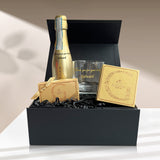 -套裝包含香檳、威士忌杯、威士忌酒、巧克力等,搭配事宜,又有客製化內容,更具心意。
