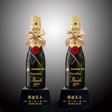 -將公司logo,祝福語手工雕刻在mini香檳/紅酒上,搭配上適合的裝飾圖案點綴,再加上雕刻的底座,既可以是飲品也可以是獎座,更可以是紀念品,超值有意義,是公司團隊活動必選的禮品。