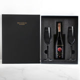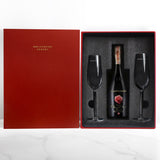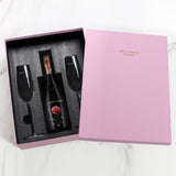 禮品套裝包括 Bottega Moscato 個性化文字、2 個刻有品牌名稱的香檳酒杯。