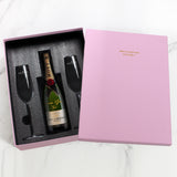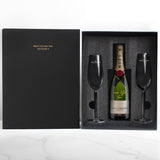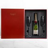 禮品套裝包括 Moët & Chandon Imperial Brut NV 個性化文字、2 個刻有品牌名稱的香檳酒杯。