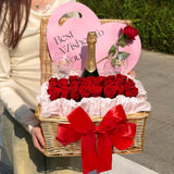 母親節香檳禮籃Perrier-Jouët 香檳客製化人像 訂製文字 永生花禮籃 專屬浪漫禮物感謝母愛 創意驚喜禮物送媽媽婆婆送老婆訂製藤籃禮物 Preserved Flowers Gift Basket DY05-63