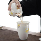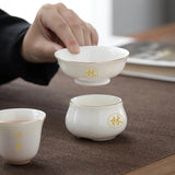 白瓷雕花茶杯組