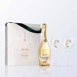 Perrier-Jouët Blanc 巴黎之花原裝禮盒套裝,永恆雕刻的香檳、精緻禮盒和精美的酒杯,每一樣都必不可少!在香檳上雕刻上對媽媽真摯的祝福,在母親節當天送出,既有紀念意義又可以一起慶祝屬於媽媽的節日。將禮物盒陪伴一起送到,一定更討媽媽的歡心。