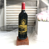 -底座:烏檀木八音盒底座(會放歌+會旋轉) 雕刻內容:酒瓶:人像雕刻+文字(少於40字中英文)+底座圖案文字(圖案可為模板圖案及公司logo)